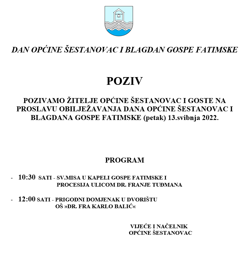 Početna » Pozivnica za blagdan Općine Šestanovac