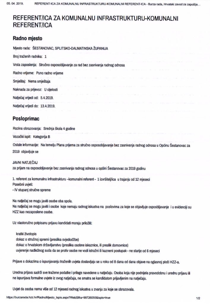 Početna » RADNO MJESTO Referent/referentica za komunalnu infrastrukturu
